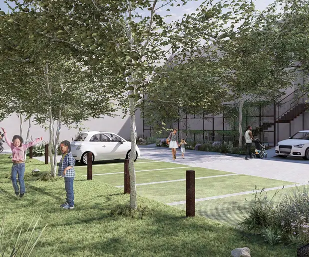 Parkings paysagers, Liaisons piétons, Parcs Publics, Coeurs d'îlots végétalisés, Berges